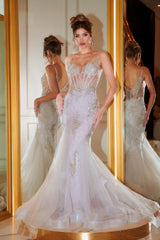 Portia and Scarlett PS21104 is Pageant Evening and Prom Gown Ready made with the 2021 season lace, handmade and intricately layered, encrusted with crystals rhinestones over metallic 3d lace. The modern exposed corseted bodice sinches the waist and flattered the hips with the vee shaped silhouette. The Gown has a centre back zipper and an organza tulle skirt. The dress is a standard size make with moderate stretch, the model wears size 2 and is 175cm tall wearing 10 cm high heels. Base fabric is Power mesh Body Con overlayed with netting and Organza Skirt.