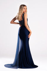 Portia and Scarlett PS21118 is Pageant Evening and Prom Gown Ready made with the 2021 season rhinestone fabric. The classic design is renown for its flattering silhouette with the ruched bust and side drape. The Body of the dress is made from our inhouse signature lyra. The dress is a standard size make with more than moderate stretch around the hips and bum, the model wears size 2 and is 175cm tall wearing 10 cm high heels. Base fabric is Power mesh Body Con overlayed with netting and rhinestones with a centre back zip