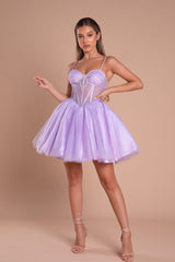 Portia and Scarlett PS21133 is Prom and Homecoming ready. This Tutu midi is a semi sheer corseted bodice with exposed boning detailed with crystal embellishments drawing the eyes attention to the tiny vee waist line. The midi has a medium flare. The dress is a standard size make with moderate stretch, the model wears size 2 and is 175cm tall wearing 10 cm high heels. Base fabric is Power mesh Body Con overlayed with netting and rhinestones with a centre back zip
