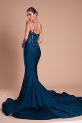 Portia and Scarlett PS21175 is Pageant Evening and Prom Gown Ready made with the 2021 season lace, handmade and intricately layered, encrusted with crystals rhinestones over metallic 3d lace. The modern exposed corseted bodice sinches the waist and flattered the hips with the vee shaped silhouette. The Gown has a centre back zipper and uses our inhouse coverage lycra. The dress is a standard size make with MORE than moderate stretch over the hips and bum, the model wears size 2 and is 175cm tall wearing 10 cm high heels.