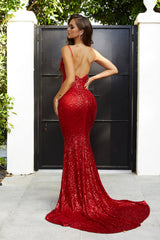 New colours added to our signature best selling style the glisten gown . This moderate low back sexy prom and evening dress has an flattering fit. The gown is made from stretch sequin with an understated train. The dress has good stretch the model wears sz 2 with room to spare. Model measurements are 173cm Height, 33" Bust, 25" Waist, 36" Hip and was wearing 10 cm heels. PS21287 Portia and Scarlett comes in red, rose gold and black
