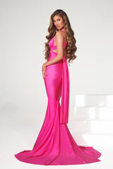 PS6110 Stand out from the crowd with this easy to wear beauty, made from a thick premium quality stretch slinky lycra and features an invisible zip closure at centre back for ease of wear. The fabrication is double layered in the skirt to sculpt and create our classic hourglass silhouette; this backless beauty has a multi way tie up bodice.